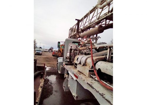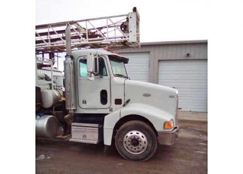 The 1971 Cyclone 300 Drilling Rig is mounted on a 2000 model Peterbilt truck. The 1971 Cyclone 300 Drilling Rig has a CAT C-12 engine with a 10-speed transmission and a Detroit 6V71 deck engine. It also comes with a Mission 4x3x13 Sand Master and a 850/100 air compressor. The rig has a retractable rotary table and 300 ft of 4″ drill stem. The truck has 11r 22.5 wheels and tires, which are at 50% usage or better. Everything on this rig is in working order.