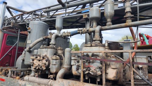 Featuring a 650/250 air compressor, this 1979 Failing Holemaster 1250 drill rig is a powerful and reliable option. Gone are the worries about an aging engine. This rig boasts a recently replaced motor. Not only that, but we upgraded the entire drive train for smooth operation. For maximum efficiency, this Failing Holemaster 1250 features not one, but two mud pumps and two hydraulic pumps, along with an injection pump and pick up pump for optimized fluid circulation.