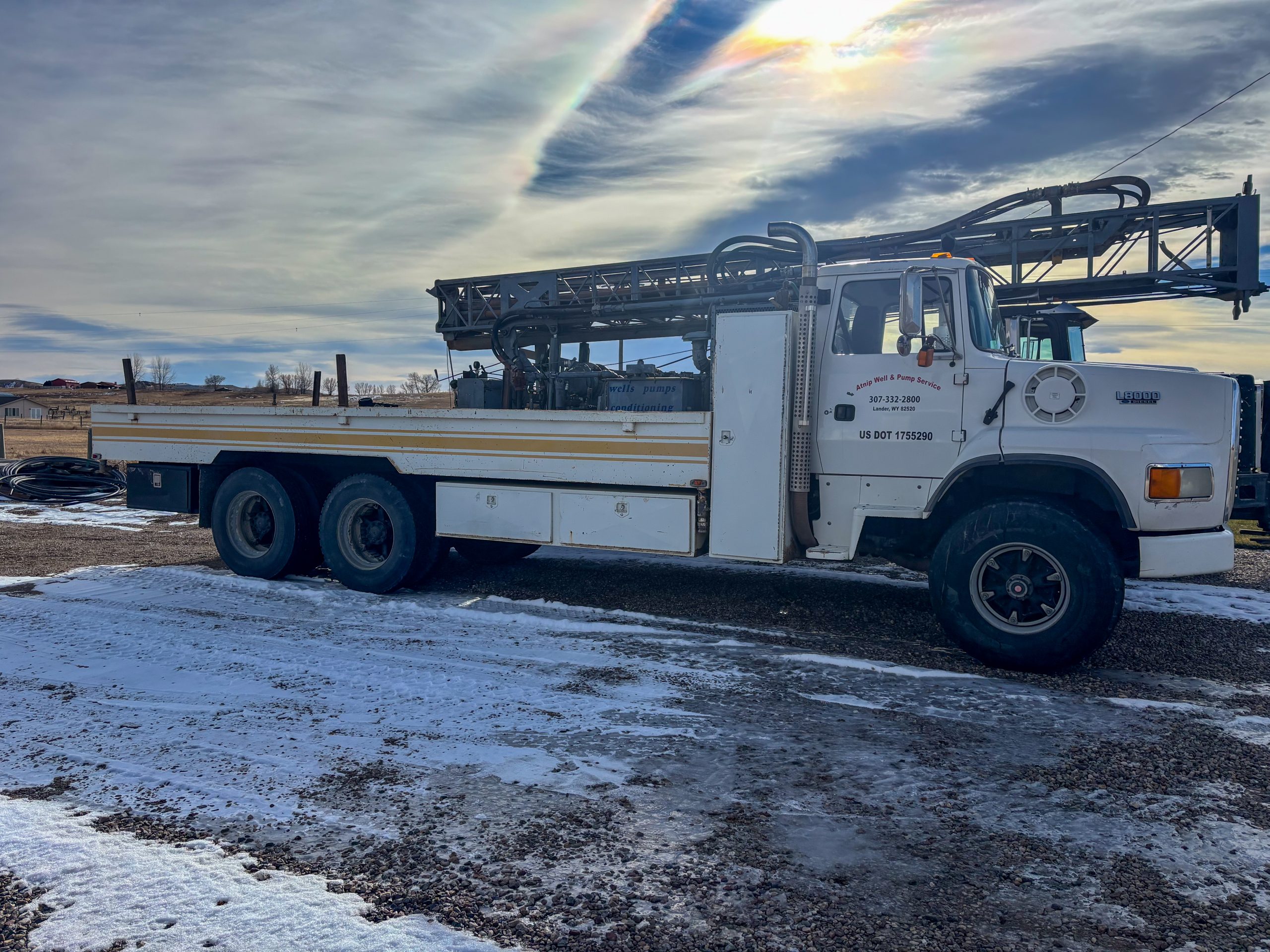 This truck is set up for serious field efficiency. It features a large 2,200-gallon water tank, providing ample capacity for dust control or drilling fluid supply. Additionally, it comes equipped with a 200-gallon auxiliary fuel tank, making it a versatile “service-station-on-wheels” for refueling your rigs and equipment right on the job site.