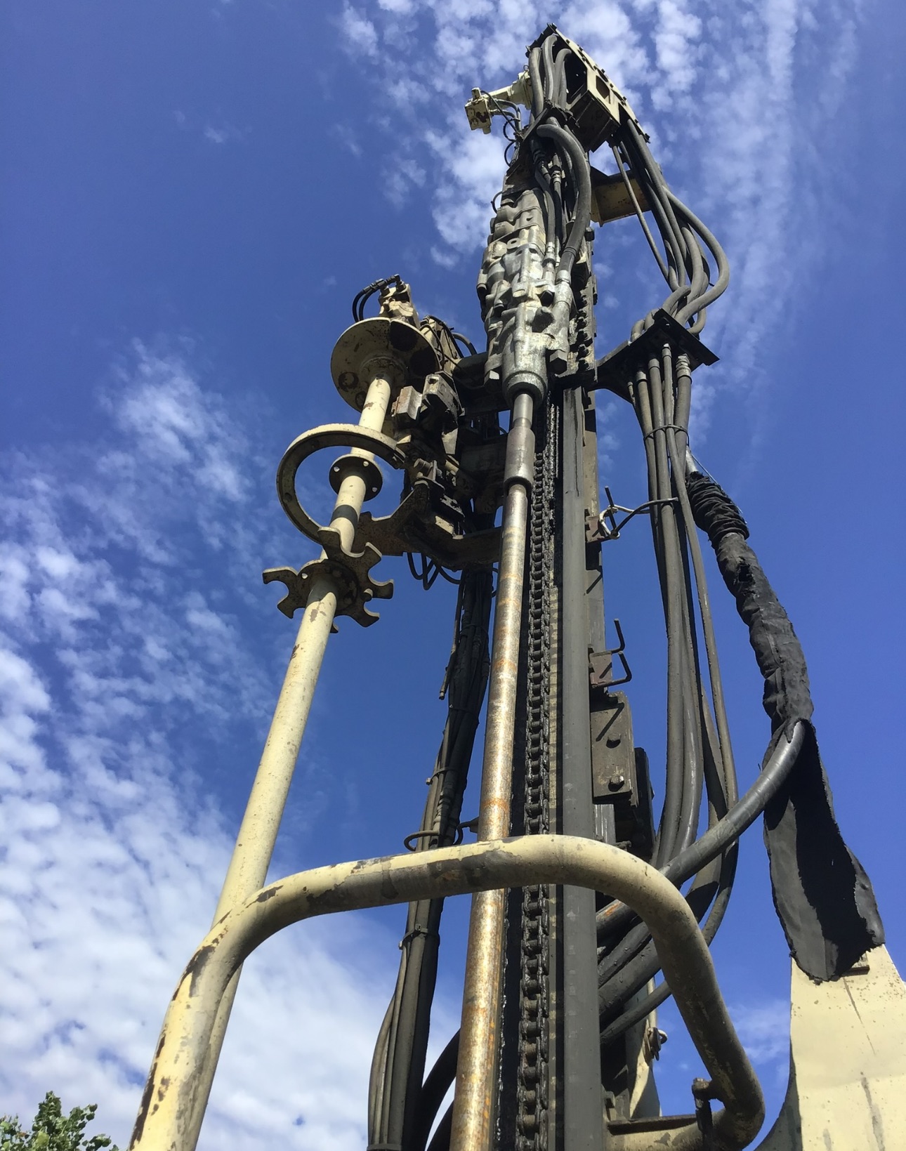 - Operator Comfort and Safety: The cab is equipped with air conditioning, a back-up alarm, warning horn, and an inclinometer. The rig also features safety shutdown devices on the feed, an anti-jamming system, and a thread greasing device.