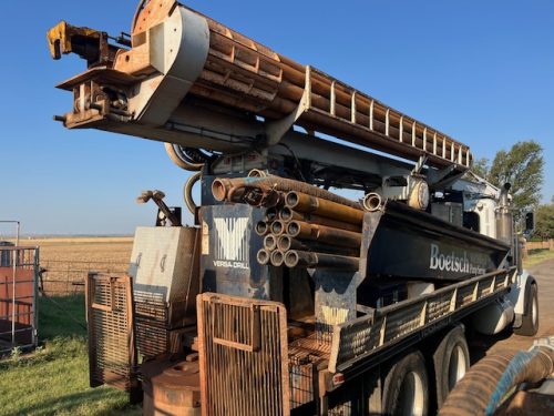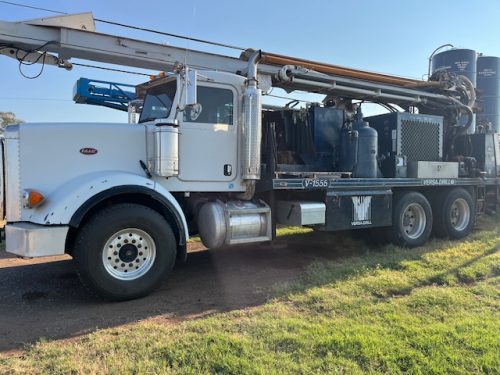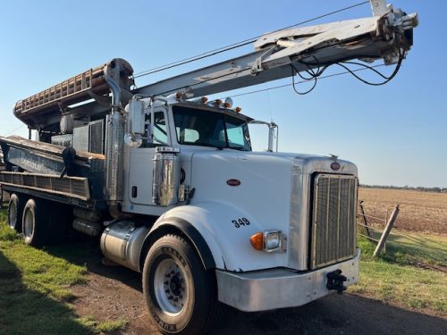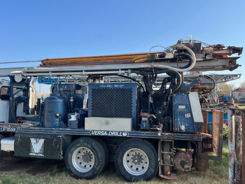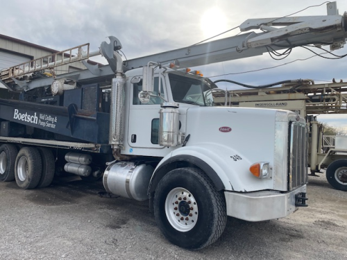 This 2004 Versadrill V-1555 drill rig, mounted on a reliable 2004 Peterbilt chassis, is a capable and well-equipped machine ready for immediate work. This unit has been recently serviced, with 2024 repairs including the replacement of pins in the head cradle, the retainer plate, and the track roller, ensuring smooth operation.
