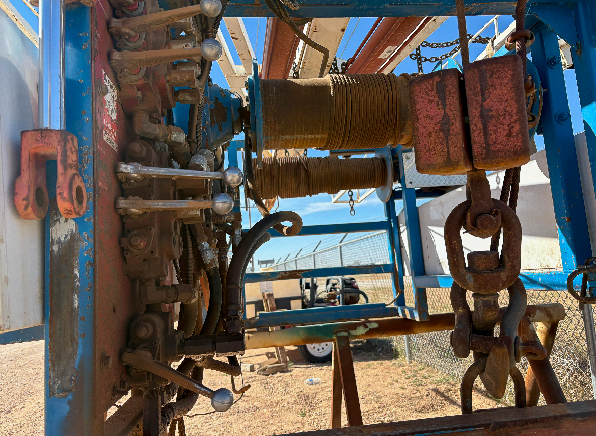 The heart of this rig is the 36 ft. telescoping mast, designed with an 11 ft. maximum layback to give you the reach and flexibility needed over the wellhead. It has a lifting power of 3,000 lbs. capacity on a single line, scaling up to a formidable 12,000 lbs. with a 4-part line. The mainline moves at a crisp 120 feet per minute, featuring a 7/16″ x 220′ cable and a 5-ton safety hook. Operating controls are conveniently located at the left rear for ground-level access, equipped with hydraulic bypass valves to prevent accidental overloading.