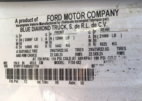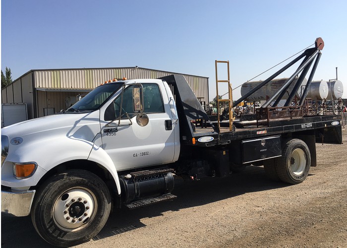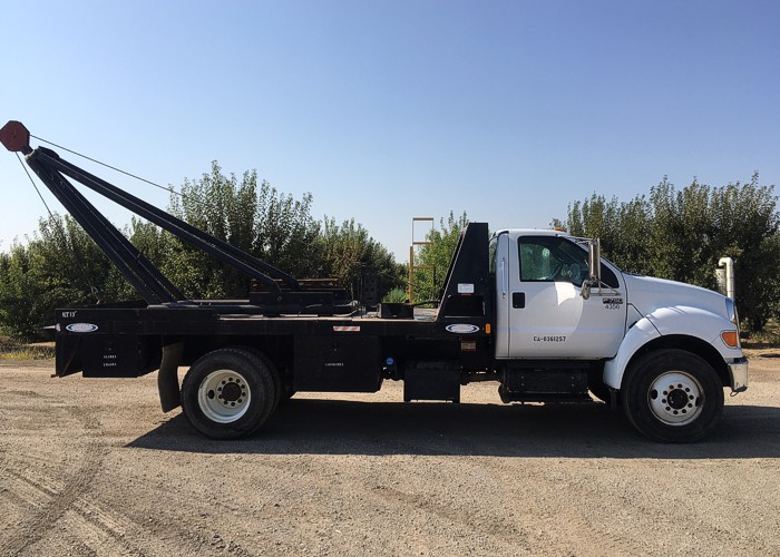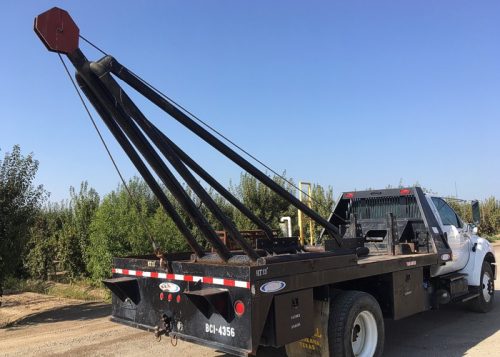 The F750 XL Rig Up Truck is a 2011 Ford F750 XL Super Duty S/A Rig Up Truck with Cummins ISB215 Diesel Engine – 215 HP, Auto Transmission, Spring Suspension, 192″ wheelbase, Ledwell 16 ft x 8 ft metal A-Frame bed, PTO. The F750 XL Rig Up Truck has 15 ft extendable poles that lay down or lay forward with a 20,000 lb hydraulic winch that can be controlled in the cab or at the bed. 1750.