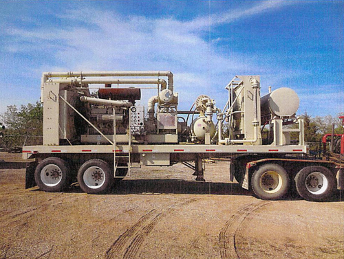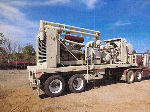 The unit is equipped with a generous 200-gallon fuel tank, ensuring extended operation between refuels. All of this is mounted on a durable Stoughton trailer, making it convenient for transport to job sites. With a dry weight of #30,000, this air compressor offers both mobility and robust performance.