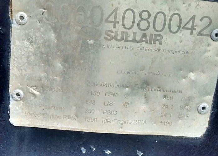 The Sullair 1150/350 Compressor is in excellent condition. See all that is included with the Sullair 1150/350 Compressor below.