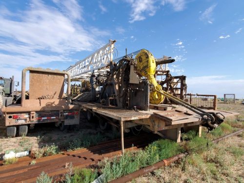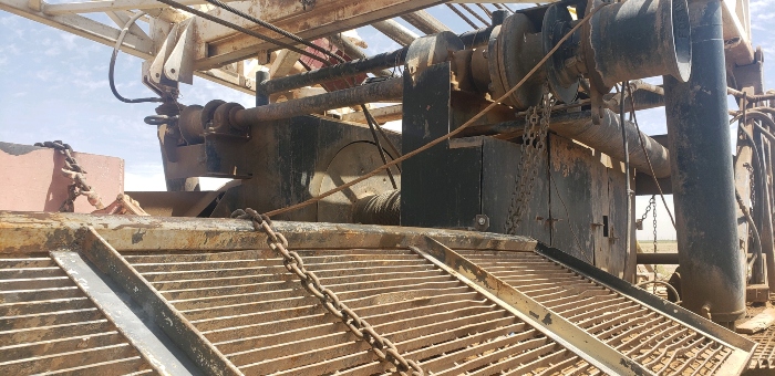 These were designed for speed and economy of moving from location to location. Built by Witchtex Machinery Company in Witchita Falls, Texas these units are still active and making hole in today’s oilfield. This unit is set up with 4-1/2″ Range 2 Drill Pipe with XH connections. The mast is 65 ft long and can handle Range 3 well casing.